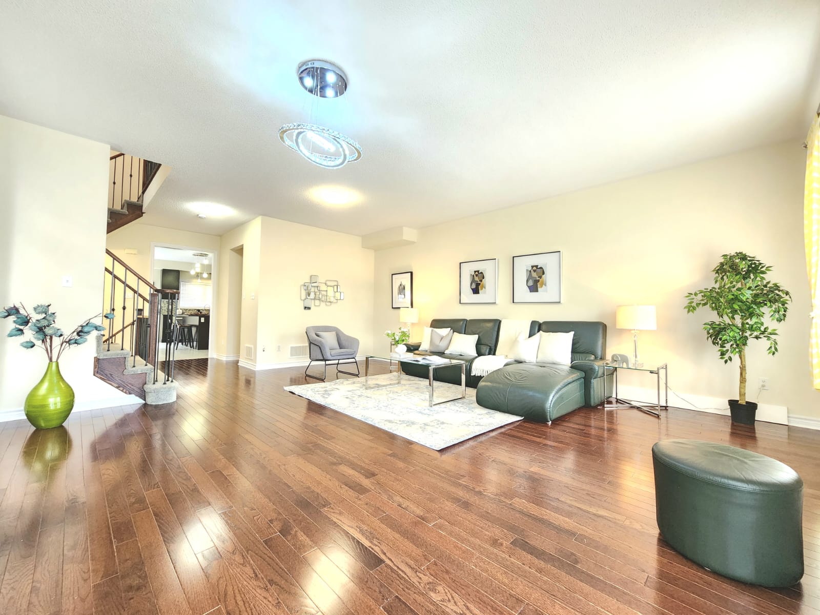 Beautiful 2,723 Sqft Freehold Semi-Detached in Desirable Pickering! Pride of ownership shines in this 10-year-old, one-owner home nestled in a sought-after, family-friendly community. Offering 2,723 sqft of living space, this property combines functionality with style across three levels. The main floor features a versatile open-concept layout with a walkout to a private, fully fenced backyard and a stylish 3-piece bath. Currently enjoyed as a cozy family room and kids play area, this space can easily be transformed into a home gym, recreation room, office, or a private bedroom for in-laws or teenagers possibilities are endless! The second floor boasts a spacious living and dining area with a gas fireplace and walkout to a balcony, perfect for entertaining. Beautiful hardwood floors and California shutters add elegance, while a powder room adds convenience. The modern open-concept kitchen showcases a large center island with granite countertops, custom backsplash, and stainless steel appliances.On the third floor, you’ll find three generously sized bedrooms, including a primary retreat with a walk-in closet and a luxurious 5-piece ensuite. Location Highlights: Close to Walmart Supercentre, No Frills, Canadian Tire, Dollarama, Blue Sky Supermarket, restaurants, Tim Hortons, McDonald’s, and more. Easy access to Hwy 401 & Hwy 407. Walking distance to Valley View P.S. and close to Pine Ridge S.S.